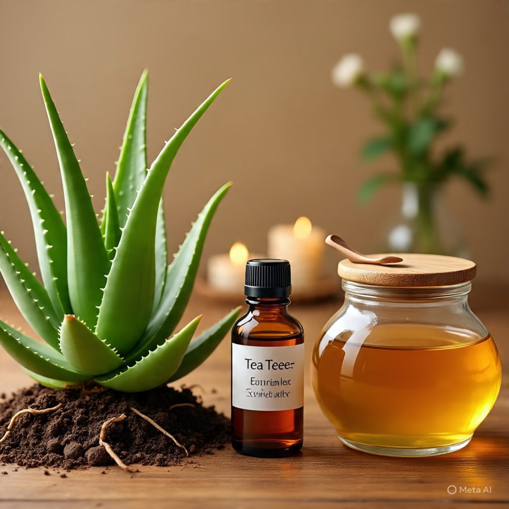 Method: Mix Tea Tree Oil in Aloe Vera gel (honey is even better) → Apply to clean face. Leave on for 15-20 minutes → Wash off with cold water. Use at night before going to bed. 4-5 times a week.